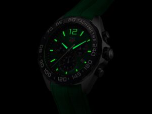 カラーとスタイルのペースを上げる、タグ・ホイヤーフォーミュラ1。ビビッドなグリーンのダイヤルとそれにマッチしたラバーストラップを備えた、汎用性に優れた43mmサイズのクロノグラフです。スポーティなデザインコードが散りばめられたモーターレーシングコレクションが、勝利へと走り抜けます。