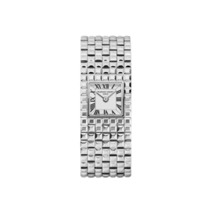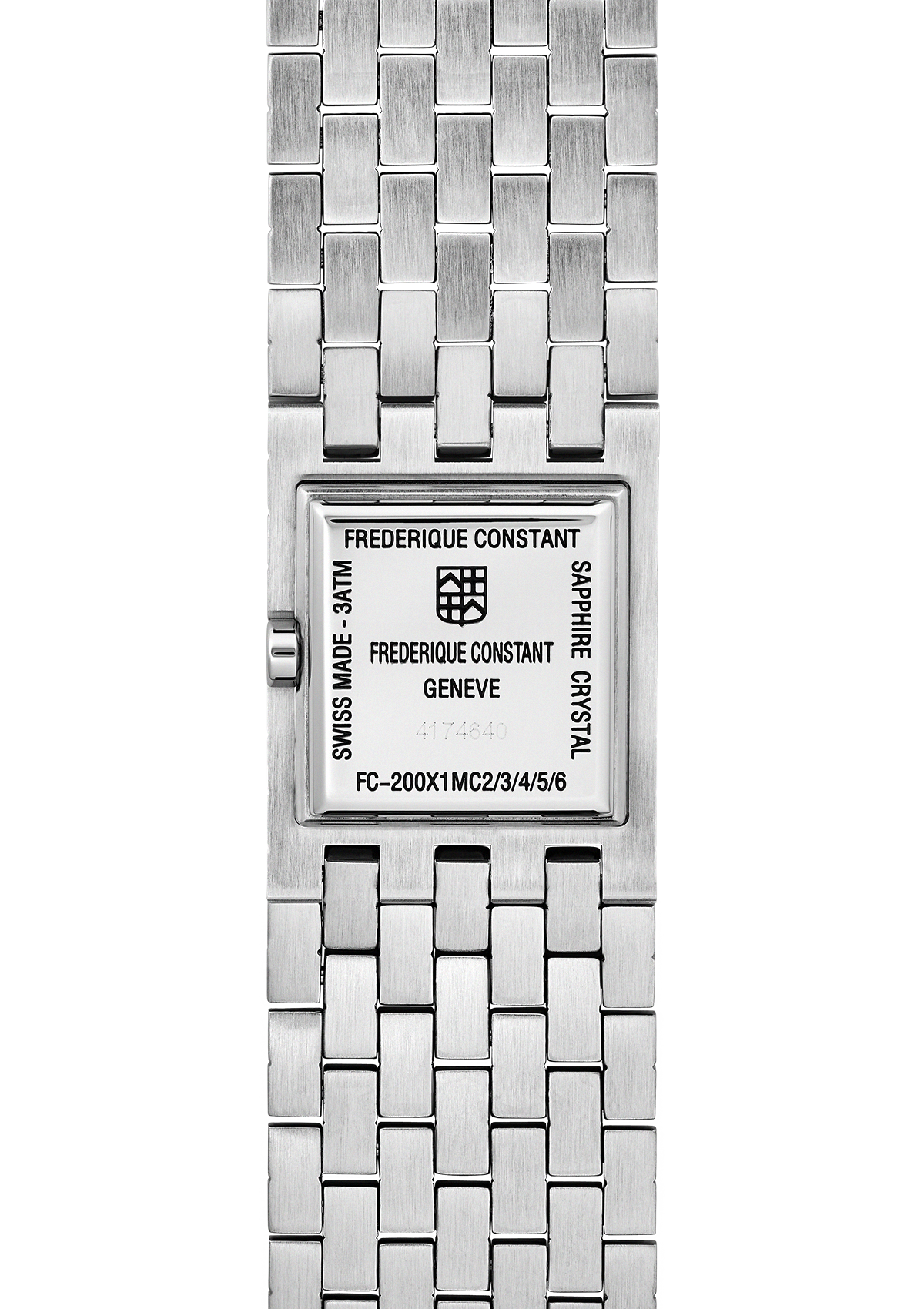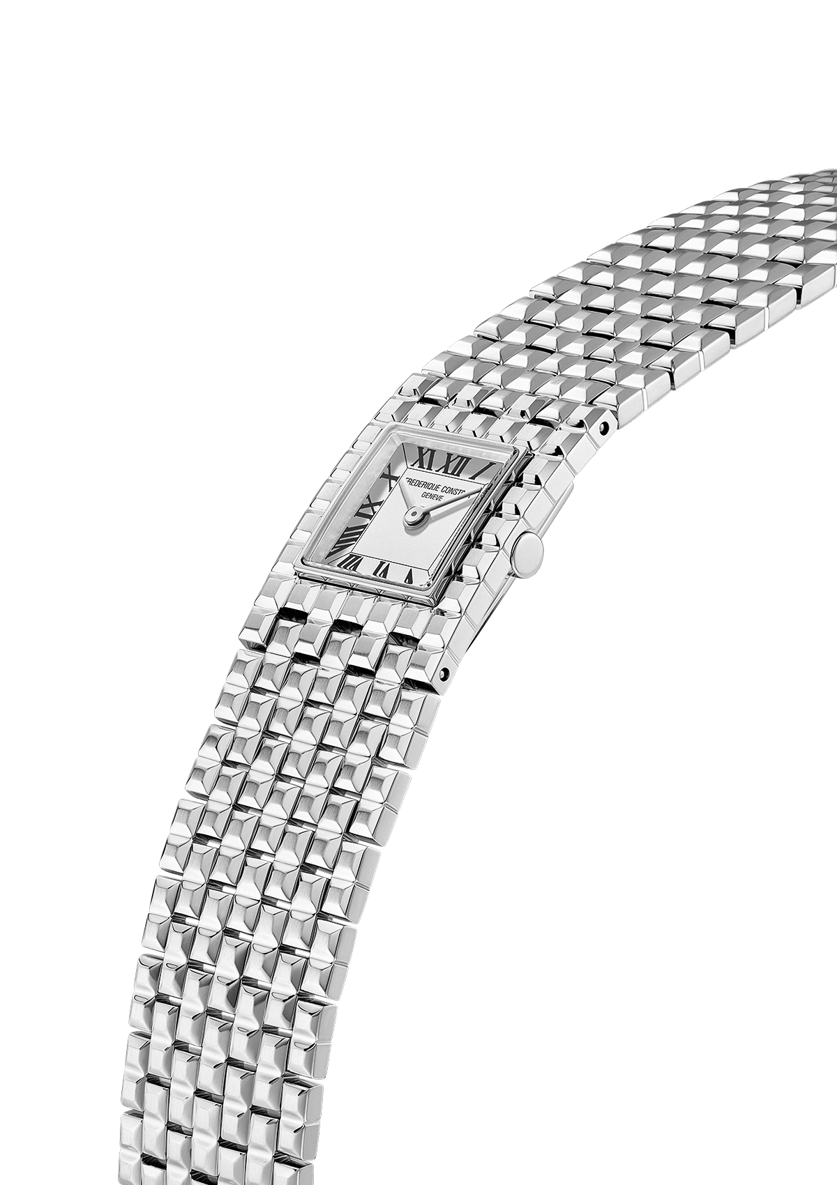 20年以上ぶりに復活を遂げた、カフウォッチのアイコン「マンシェット」。“時を読む”以上に“装うこと”を楽しむ、フレデリック・コンスタントが贈るジュエリーウォッチです。7リンク構成のブレスレットと一体化したスクエア文字盤が、手元をエレガントに引き立てます。ホワイトダイヤルにローマ数字を配した、クラシカルな表情。視認性も備えたシンプルで上品なスタイルです。