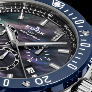 パワーボートレースのタフでダイナミックな世界観を表現した、機能性と防水性に優れたダイバーズウォッチ。