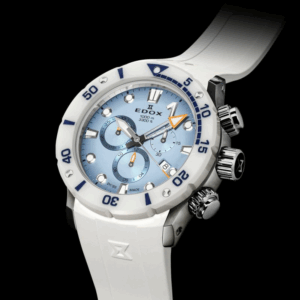 パワーボートレースのタフでダイナミックな世界観を表現した、機能性と防水性に優れたダイバーズウォッチ。