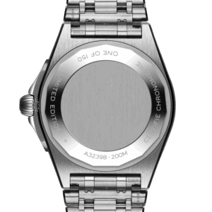 ブラックマザー オブ パールのダイヤルにゴールドのロゴが映え、ケースバックには「ONE OF 150」の刻印を施しました。