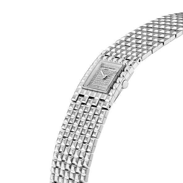 20年以上ぶりに復活を遂げた、カフウォッチのアイコン「マンシェット」。“時を読む”以上に“装うこと”を楽しむ、フレデリック・コンスタントが贈るジュエリーウォッチです。7リンク構成のブレスレットと一体化したスクエア文字盤が、手元をエレガントに引き立てます。158石ものダイヤモンドが敷き詰められたラグジュアリーモデル。華やかでリュクスな雰囲気が、装いに特別感をもたらします。
