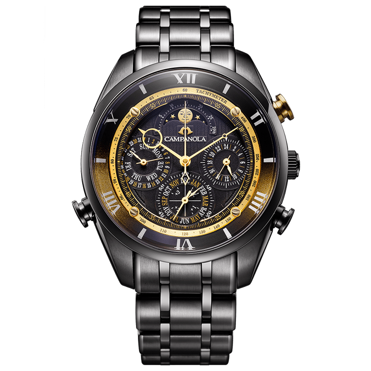 悠久の時間と宇宙との共鳴を表現した、時と宙へのロマン溢れる「星響」モデル。 ミニッツリピーター、ムーンフェイズなど、時計の4大複雑機構をすべて搭載しています。 宙へと響きわたる鐘の音をデザインに落とし込み、ブラック&ゴールドの世界観で表現。 古典的な複雑時計を愉しみながら、壮大なロマンの旅を腕元で感じられます。