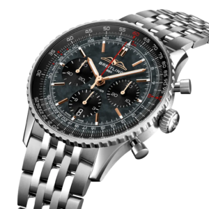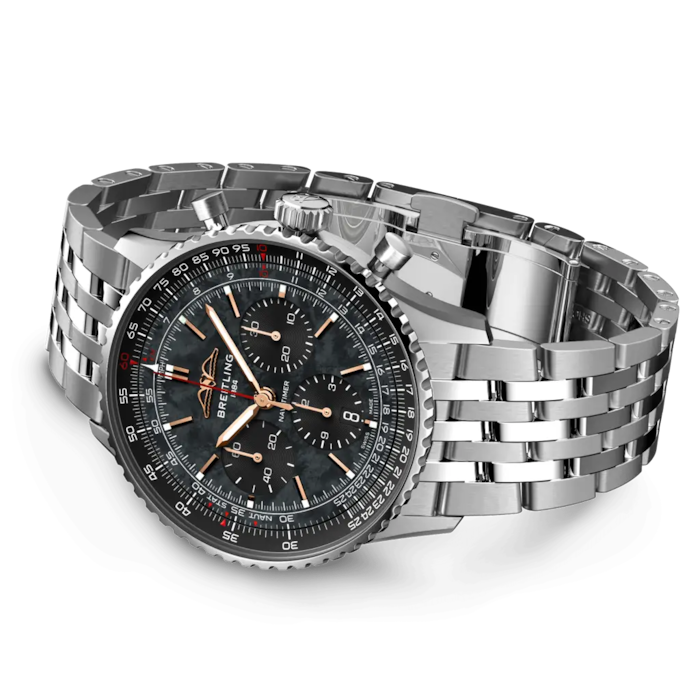 パイロットウォッチの金字塔「ナビタイマー」より、2025年の日本限定モデルが登場。 ブラック・マザーオブパールが、夜空の雲のような神秘的で深みのある煌めきを放ちます。 自社製ムーブメント「キャリバー01」を搭載し、裏蓋からその精緻な動きを鑑賞可能。 機能とスタイルを極めた歴史的モデルに、特別な美しさを宿した一本です。