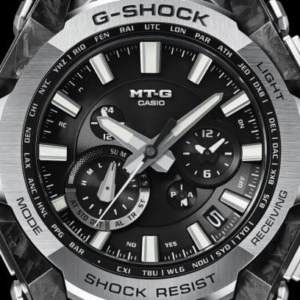 AI設計による構造と、メタル×カーボンの異素材融合が生んだ革新的なMT-G。 立体的なカーボンフレームと磨き分けられたベゼルが、強さと美しさを両立します。 軽量なレイヤーコンポジットバンドやMIM成形の裏蓋など、細部まで質感を追求。 アプリ連携やタフソーラーなどの先端機能を備え、実用性と造形美を極めた一本です。