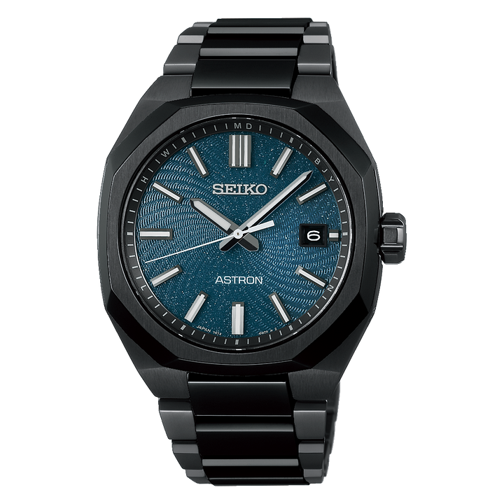 壮大で神秘的な銀河をモチーフにした、Nexter「Starry Sky」2026年限定モデル。 ラメ煌めくダークターコイズと新開発のスパイラルパターンが、宇宙のエネルギーを表現します。 ブラック硬質コーティングを施したチタン素材により、精悍な美しさと軽快な装着感を実現。 銀河の輝きと連動する艶やかなブレスレットが、実用性とともに腕元を美しく彩ります。