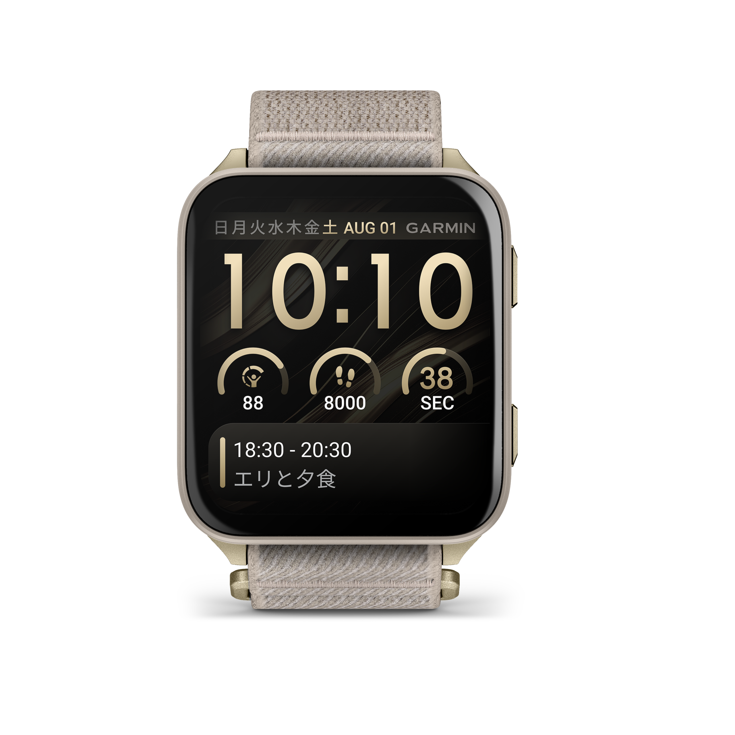 Venu X1 は、2インチのAMOLEDディスプレイを備えながら、薄さ7.9mm、40gの軽量モデルです。キズのつきにくいサファイアレンズと、明るいLEDフラッシュライトを搭載。スマートウォッチモードで約8日間稼働、洗練された軽量デザイン、そしてナイロンバンドにより、一日中快適に着用することができます。